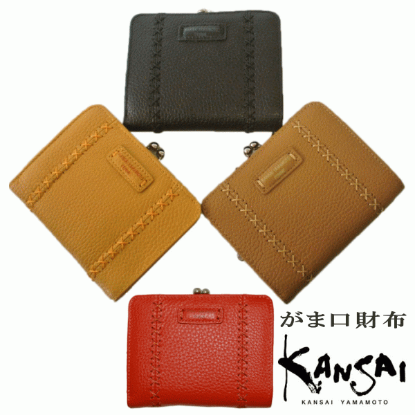 財布 レディース KANSAI YAMAMOTO 山本寛斎 ヤマモトカンサイ 婦人用本革二つ折り財布 MJ4505 イエロー色 ベージュ色 ブラック色 オレンジ色 ワインレッド色
