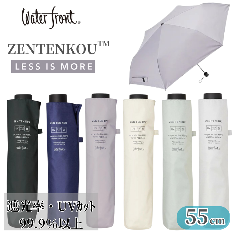 日傘 ウォーターフロント Water Front ZENTENKOU 55cm UVブロック 遮光率99.9% 晴雨兼用傘 UVカット99.9% LESS IS MORE 折りたたみ傘 折傘 軽量 紫外線対策