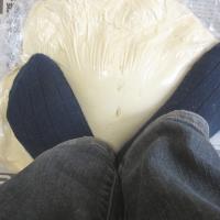 4−1足踏みにした生地を、乾燥しないようにビニール袋に入れ、2〜3時間寝かす。