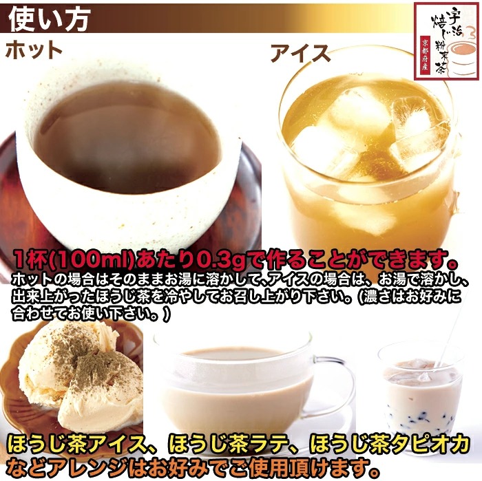 京都府産宇治茶の茶葉を使用した、香ばしくやさしい味わいの粉末ほうじ茶。