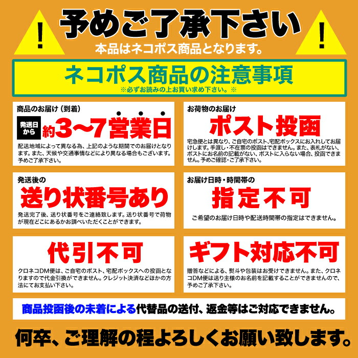 また、クロネコDM便は送り主様のお名前を記載することができませんので予めご了承下さい。