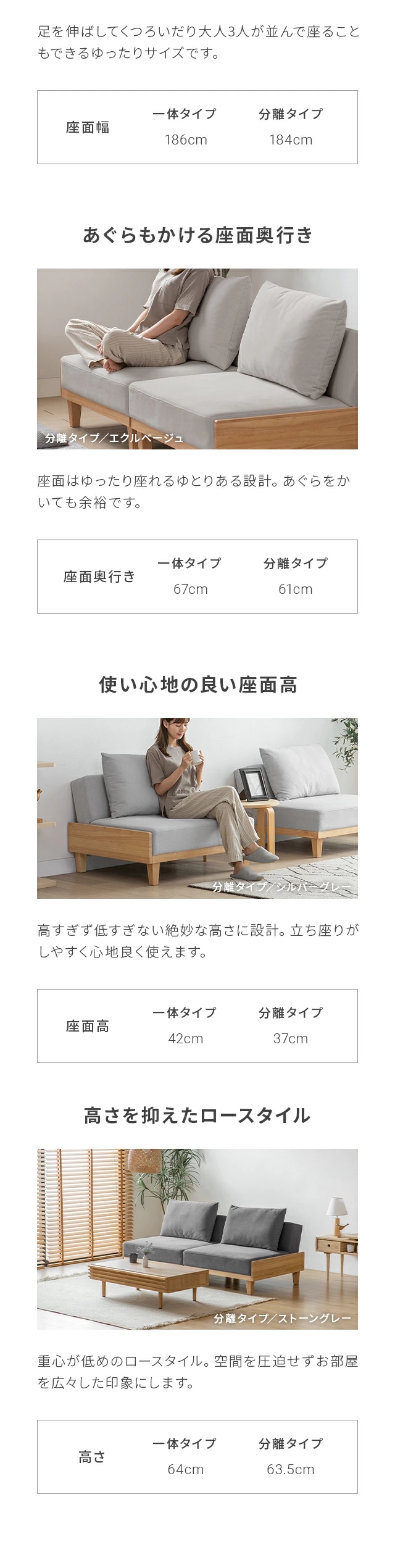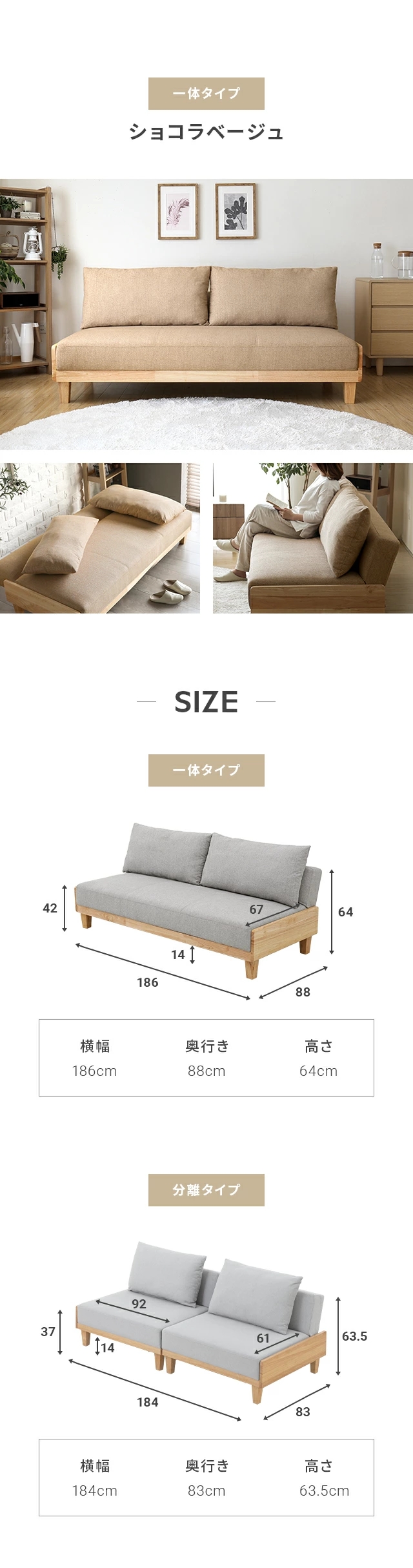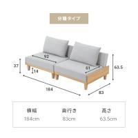 サイズ:全長:幅184×奥行き83×高さ63.5cm/1P:幅92×奥行き83×高さ63.5cm