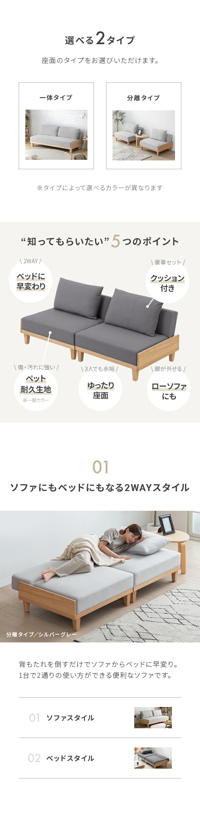 おすすめポイント:ソファにもベッドにもなる2WAYスタイル、3段階リクライニング、しっかりとした座り心地