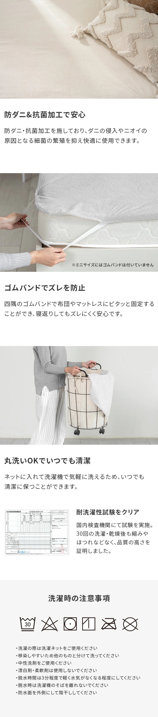 敷きパッド 綿100% パイル生地 防水 シーツ シングル セミダブル ダブル クイーン ミニ2枚セット おねしょシーツ ベッドカバー キング 洗濯 丸洗い 防水 介護シーツ ペットシーツ トイト
