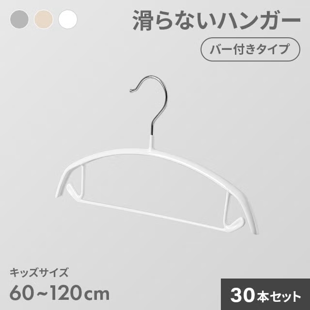 ハンガー キッズハンガー すべらない アーチハンガー 30本セット 固定フック バーあり 子供用 収納 おしゃれ PVC かわいい 滑り止め アーチ 衣類ハンガー