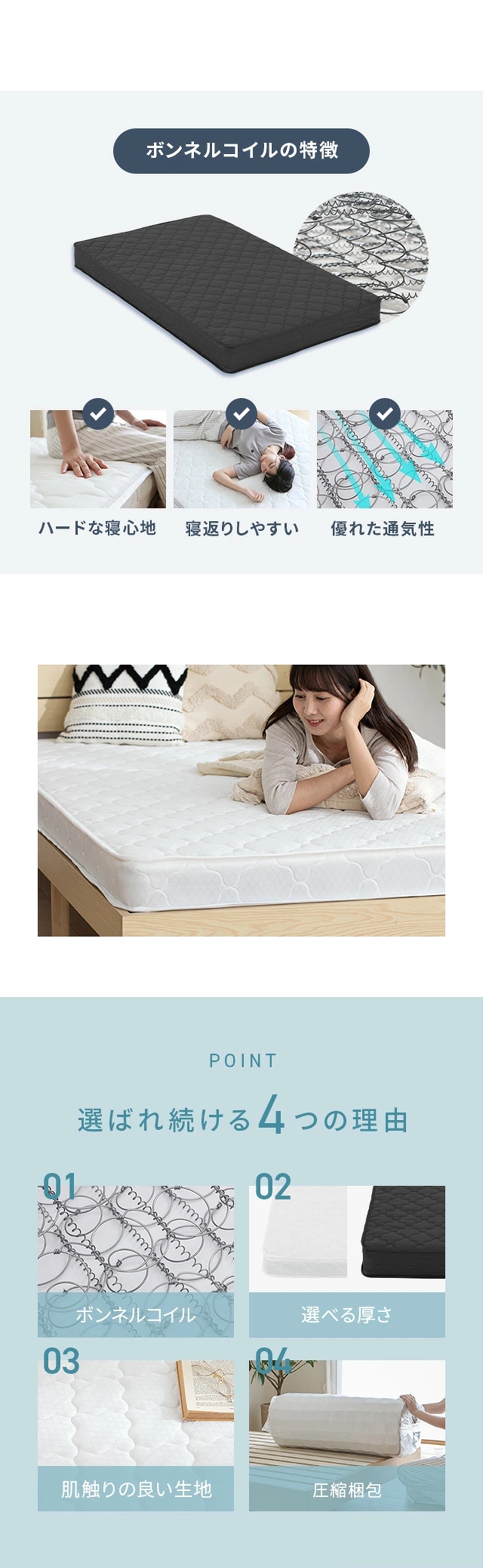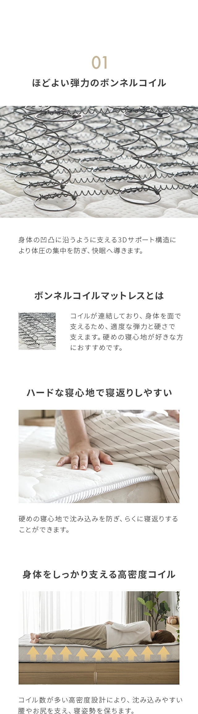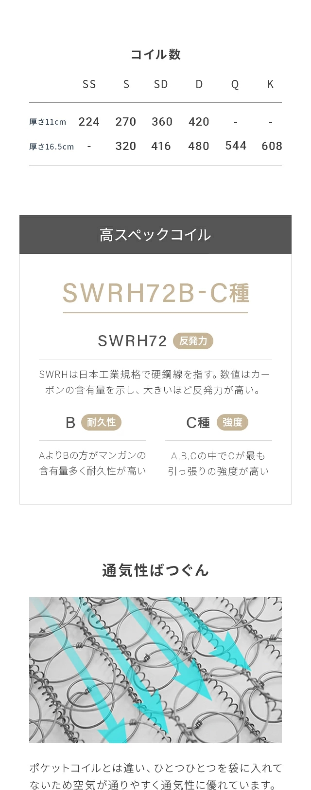 コイル数:セミシングル224個/シングル270個/セミダブル360個/ダブル420個