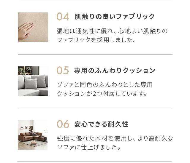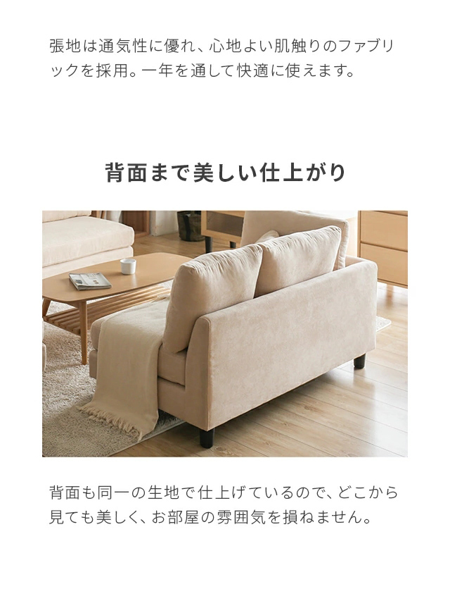 材質:張地…ファブリック / 本体…天然木、ウレタンフォーム、ウェービングテープ、Sバネ / 脚部…樹脂脚
