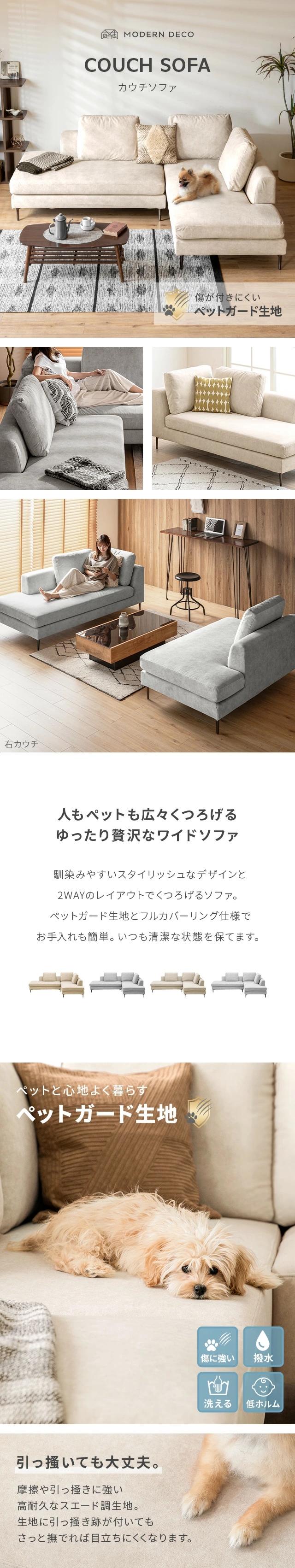おすすめポイント:傷が付きにくいペットガード生地、外して洗えるフルカバーリング、広々ワイド設計