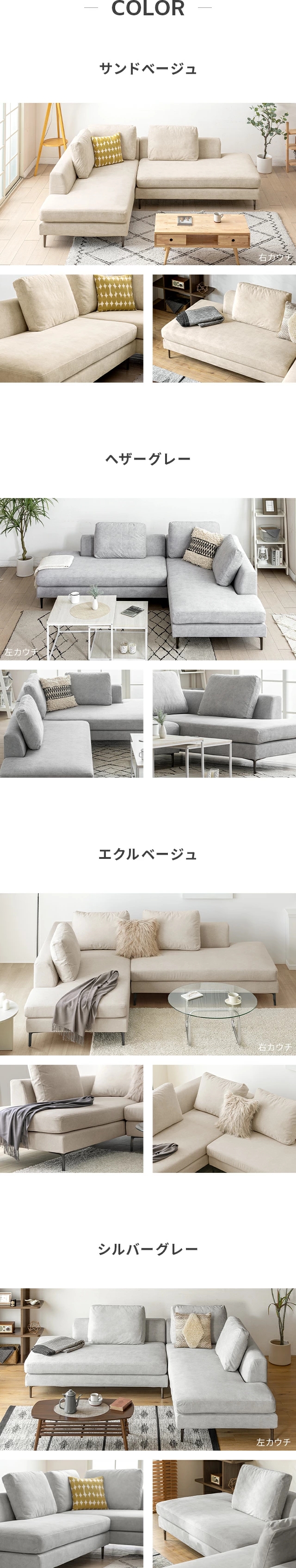 カラー:サンドベージュ、ヘザーグレー、エクルベージュ、シルバーグレー