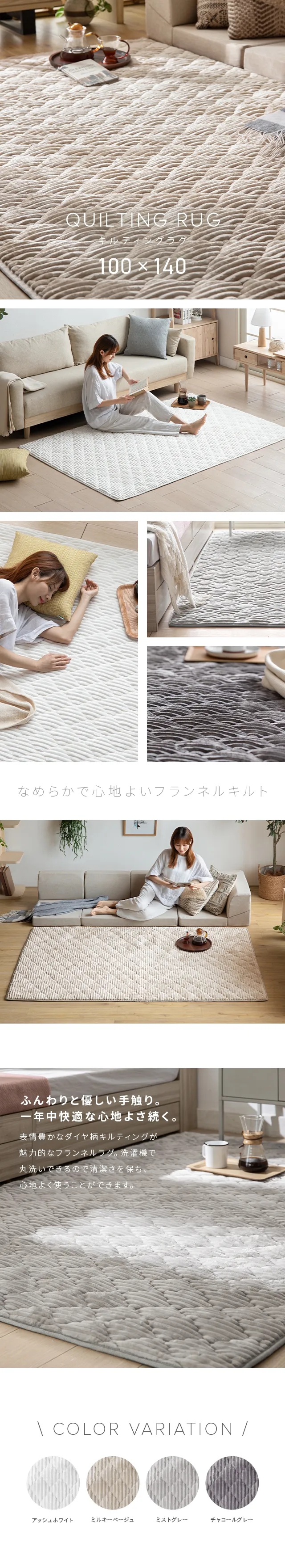 ラグ 洗える ラグマット キルトラグ キルティングラグ 絨毯 北欧 おしゃれ カーペット 100×140cm 長方形 子供 家族 リビング オールシーズン 滑り止め ホットカーペット対応 床暖房対応 丸洗い かわいい 防音 コーデュロイ