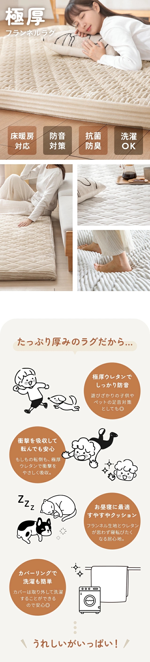 ラグ 洗える 超極厚 50mm 70mm カバーリングラグ ラグマット 高反発ラグ フランネルラグ 1畳 1.5畳 2畳 3畳 絨毯 おしゃれ カーペット 長方形 子供 家族 リビング 滑り止め ホットカーペット対応 床暖房対応 かわいい 爆買