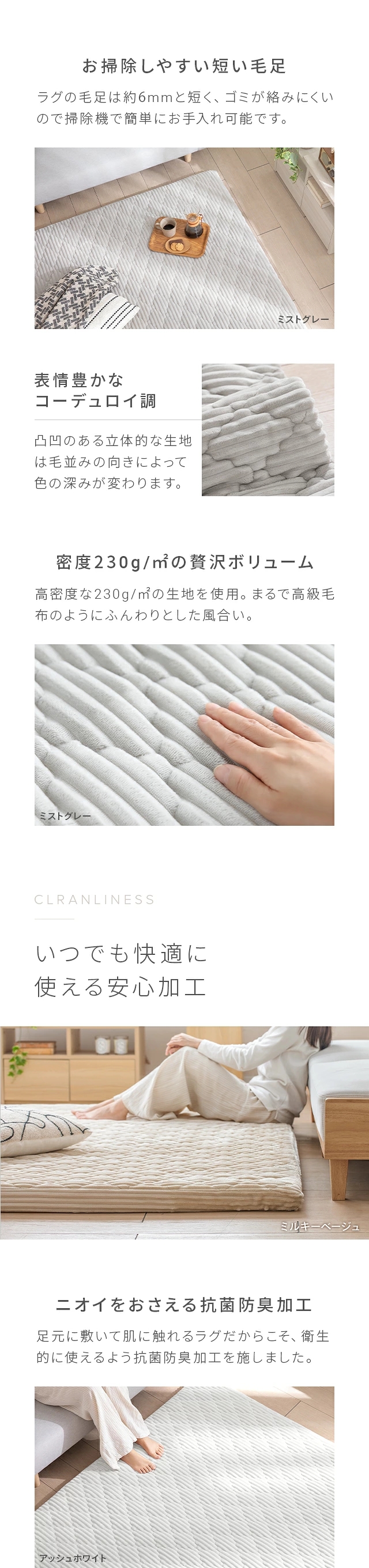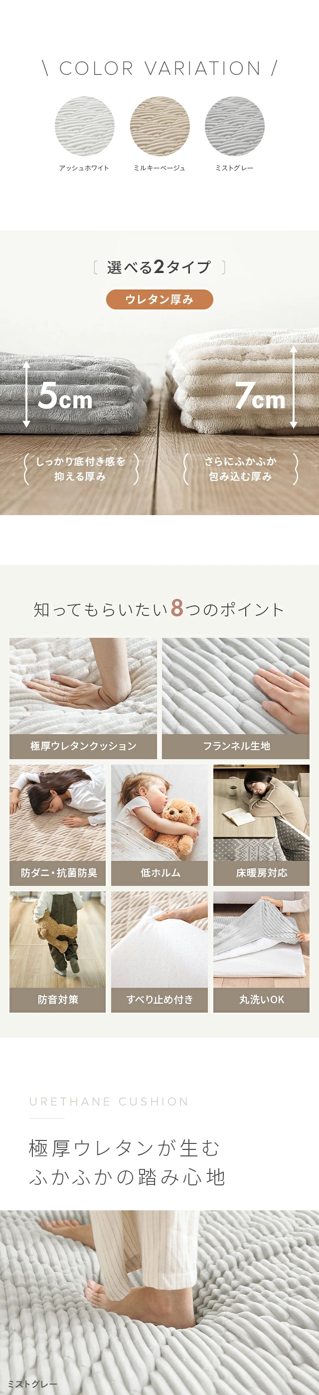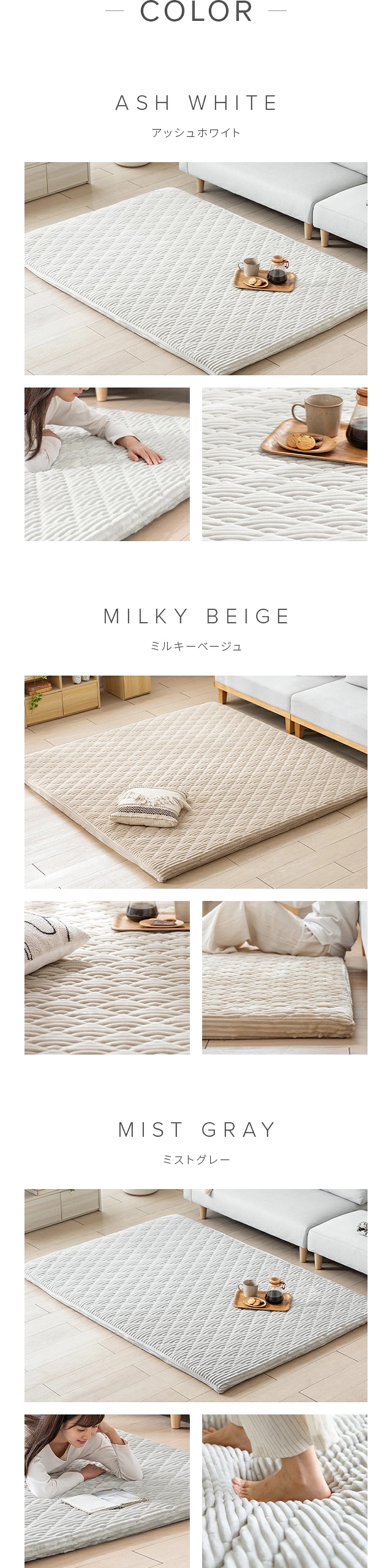 アッシュホワイト、ミルキーベージュ、ミストグレー
