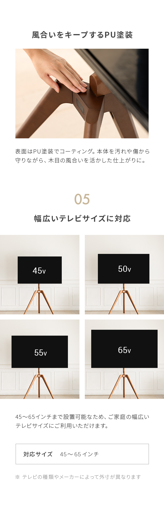 テレビスタンド おしゃれ 無垢材脚 ハイタイプ 壁寄せ 最大65型対応 簡単組み立て 三脚 テレビ台 ハイタイプテレビ台 シンプル スリム 薄型 配線隠し 伸縮 壁面 省スペース 壁寄せテレビスタンド TVスタンド おしゃれ 三脚タイプ ハイタイプ 壁寄せ