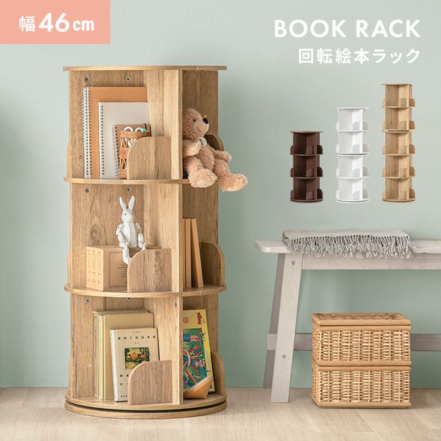 絵本棚 回転本棚 本棚 絵本ラック 3段 4段 5段 子供用 絵本 ラック 収納棚 棚 回転ラック 木目 収納ラック ディスプレイ 大容量収納 シンプル 省スペース 回転式 回転式ラック ブックシェルフ スリム 大容量