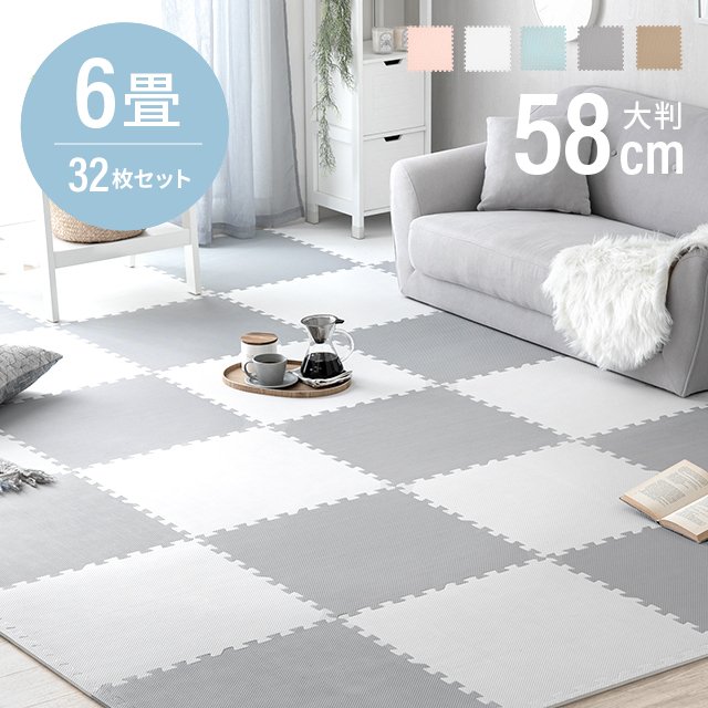 ジョイントマット 58cm 32枚セット 厚さ1cm 6畳 安心のノンホルムアルデヒド 大判 床暖房対応 クッション性 防音 防水 キッズ ベビー