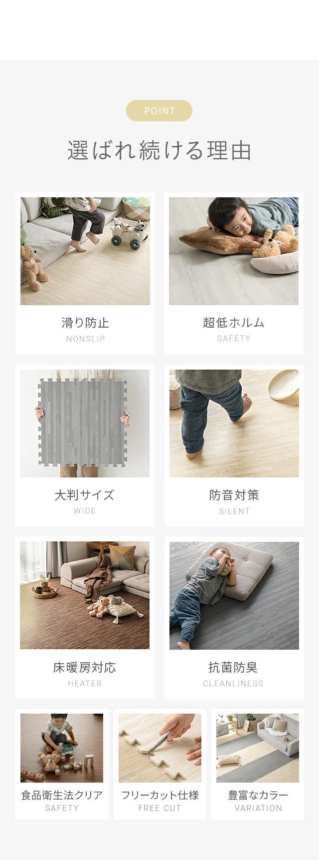 ジョイントマット 木目調 32枚 大判 6畳 抗菌 防臭 サイドパーツ付 床暖房対応 防音 フロアマット ベビーマット 木目 洗える おしゃれ ベビー 防水 リビング ブラウン ナチュラル グレー ホワイト