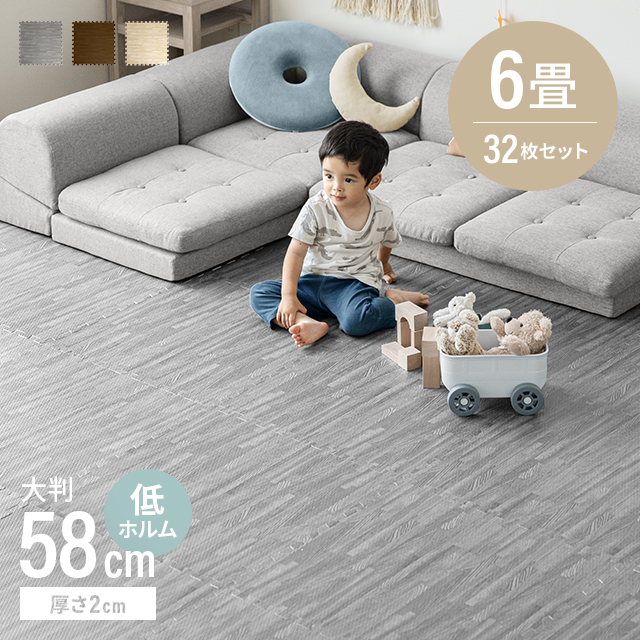 ジョイントマット 極厚20mm 安心の低ホルム 木目調 大判 6畳 32枚 抗菌 単色 防音 58cm 木目 赤ちゃん キッズ 床暖房対応 モダンデコ