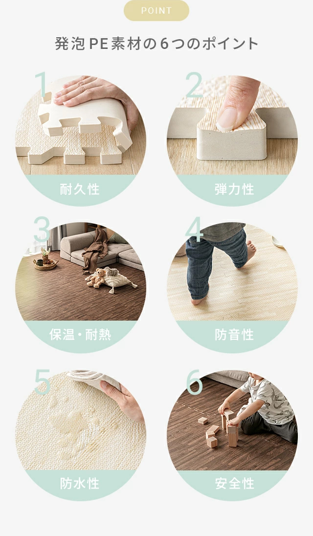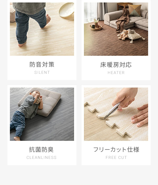 ジョイントマット 極厚20mm 安心の低ホルム 木目調 大判 抗菌 単色 防音 58cm 木目 サイドパーツ付 洗える 赤ちゃん ベビー キッズ ジョイント マット フロアマット パズルマット カーペット 床暖房対応 厚手