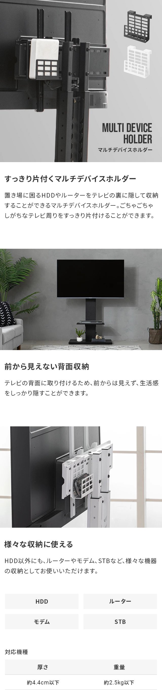 テレビスタンド専用 ホルダー 収納 取付 HDDホルダー ルーター ハードディスクホルダー 取り付け ブラック ホワイト