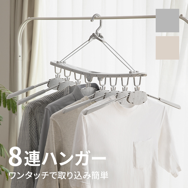8個のハンガーを1つに連結。洗濯物を干す効率が上がるので、家事の時短にも繋がります。