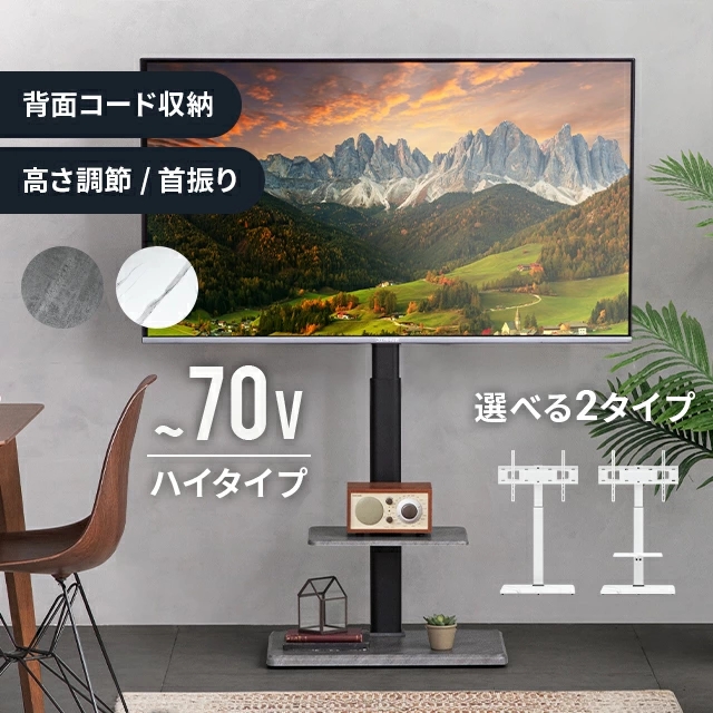 テレビスタンド 壁寄せ テレビ台 おしゃれ モルタル調 大理石調 最大70型対応 転倒防止 高さ調節 簡単組み立て スチール 石目調 自立式 スリム 薄型 配線隠し 棚板付き 棚板なし 伸縮 省スペース 壁寄せテレビスタンド 首振り 爆買
