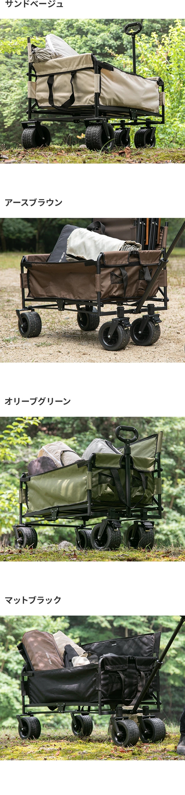 サンドベージュ、アースブラウン、オリーブグリーン、マットブラック