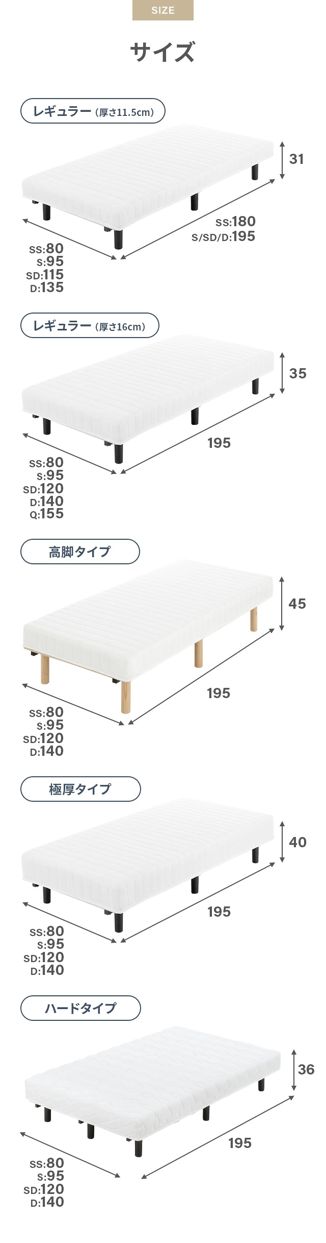 ダブル:幅135×奥行き195