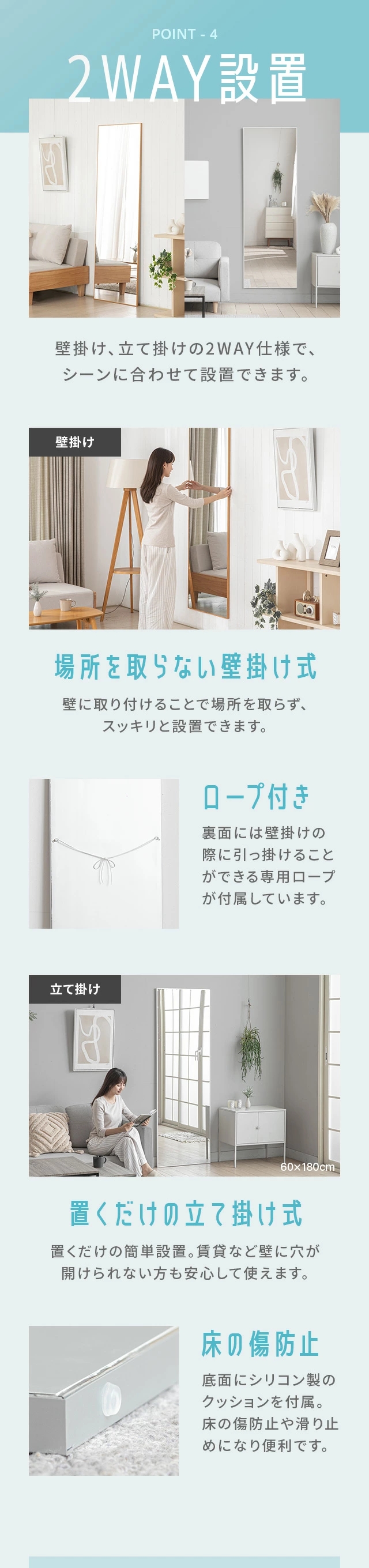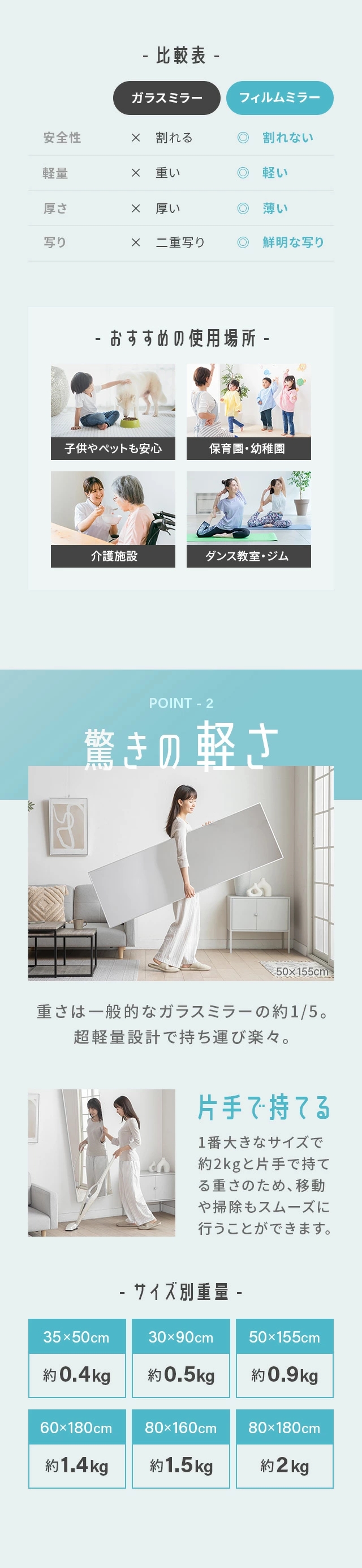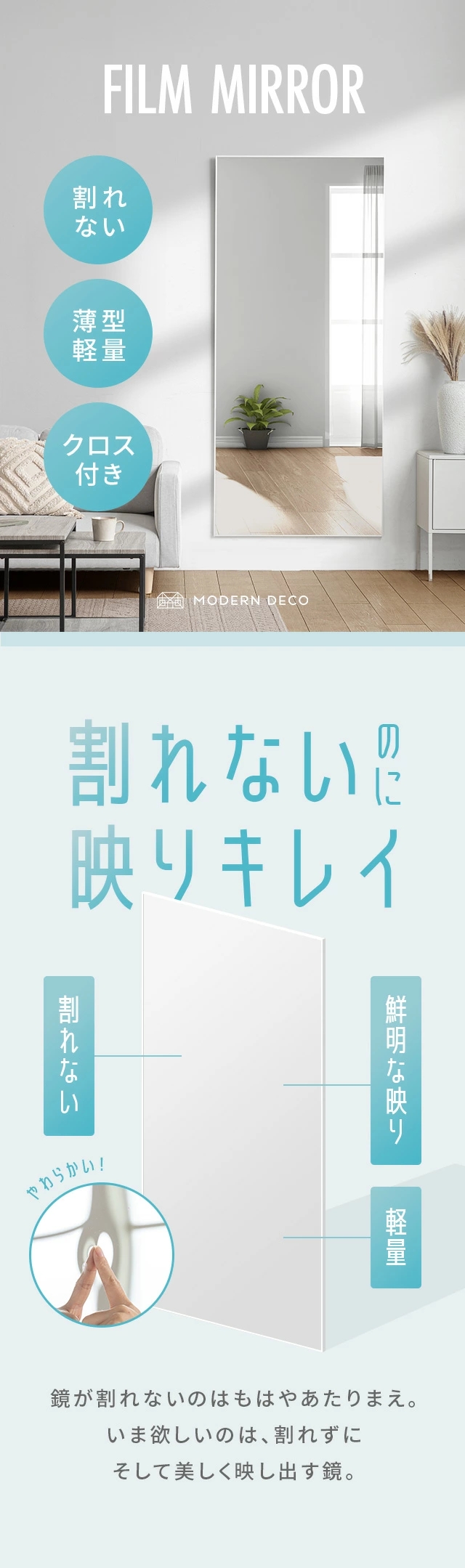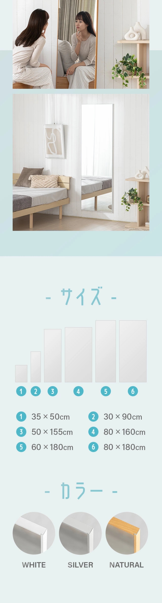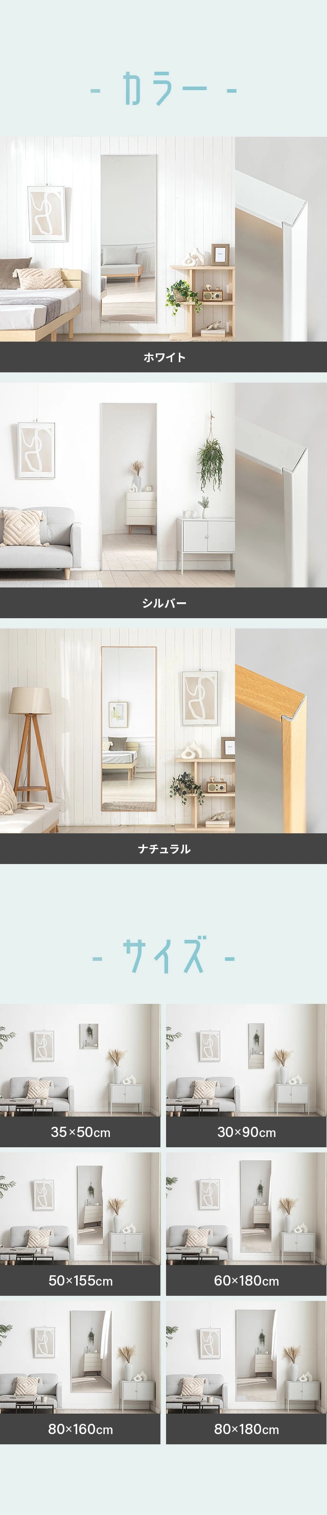 割れないミラー 全身鏡 割れない鏡 超軽量 つなぎ目なし ミラー 鏡 高さ 50cm 90cm 155cm 160cm 180cm 幅 30cm 35cm 50cm 60cm 80cm 姿見 全身 軽い 割れない フィルムミラー 2way 壁掛け 立て掛け 壁掛けミラー おしゃれ