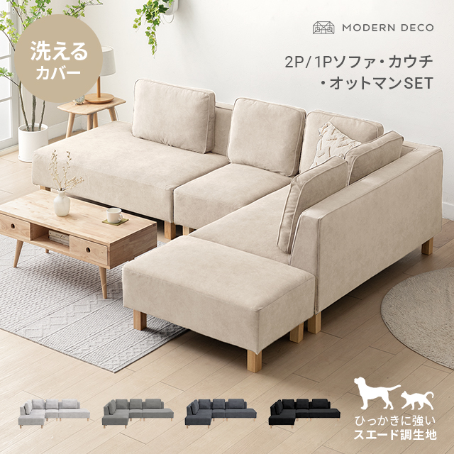 おすすめポイント:レイアウト自由自在、外して洗えるカバーリング仕様、ペットフレンドリーな高耐久生地