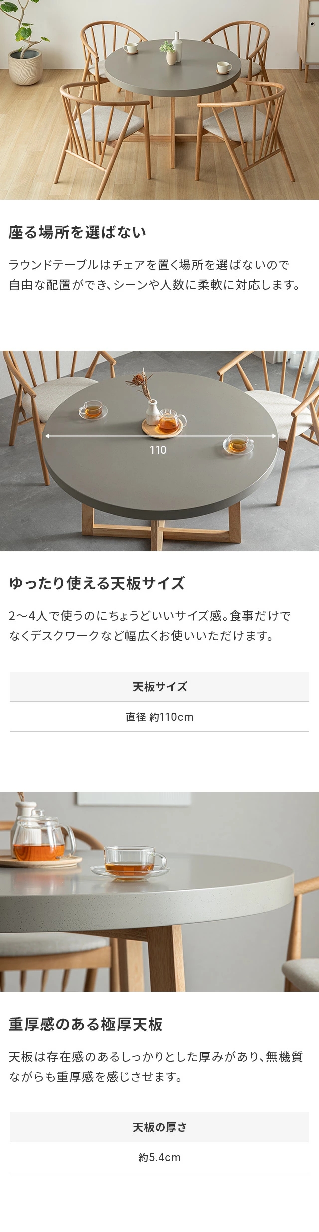 ダイニングテーブルセット ダイニングテーブル 円形 幅110cm 丸ダイニングテーブル 丸テーブル 丸 天然木 2人掛け 4人掛け 机 丸型 円形テーブル テーブル単品 木製 4人用 おしゃれ モダン 北欧