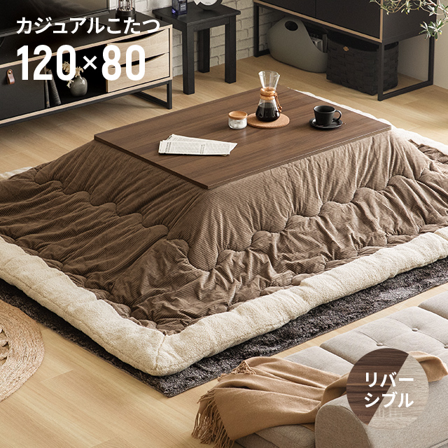 こたつ テーブル 長方形 リバーシブル 極厚ワイド コーデュロイ 布団 120cm×80cm 日本メーカー製ヒーター採用 北欧 ビンテージ風 アンティーク調 モダンデコ こたつテーブル こたつ布団 遠赤外線ヒーター 暖房器具 こたつセット