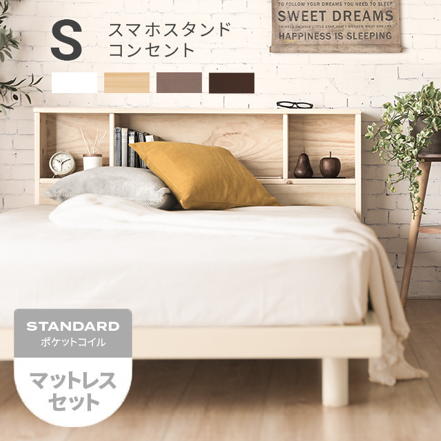 ベッド すのこベッド マットレスセット シングル 宮付き 宮棚 ヘッドボード コンセント付き 収納ベッド 収納付 北欧 モダンデコ