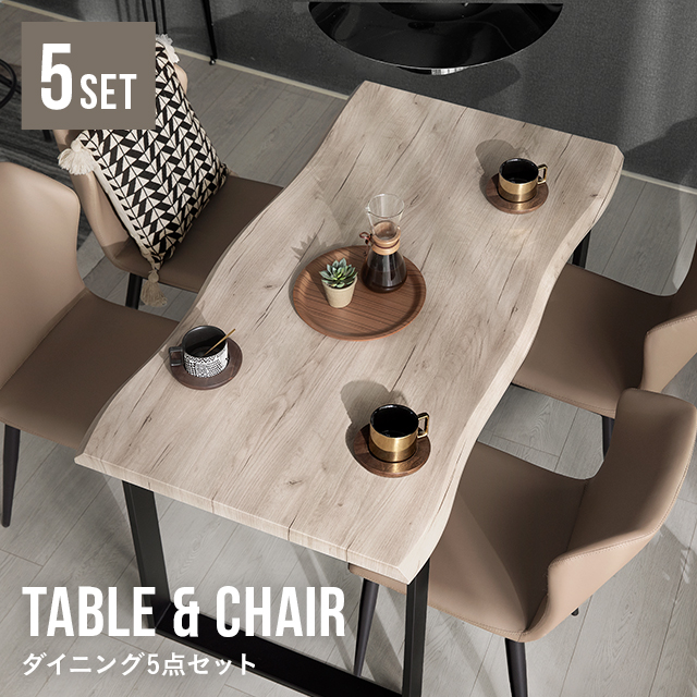 おすすめポイント:一枚板のような贅沢感、傷に強いスチールフレーム、レザーチェア付き5点セット