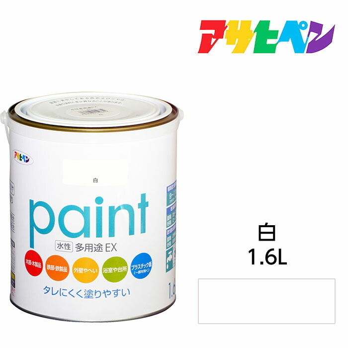 水性塗料・ペンキ アサヒペン 水性多用途EX 白 1.6L サビ止め剤・防カビ剤配合。日光や雨にも強い。木、鉄、コンクリート、モルタル、プラスチックにも