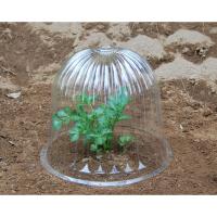 苗帽子使用例(果菜類)強風などに備え、苗帽子のすそやへりに土を十分かぶせてください。地温の効果により、苗帽子内部に適度の水滴がつき、光線や温湿度など、苗に最適の環境が保たれます。定植時に水をたっぷりやれば、あとは水やり不要。苗が生長し、中に一杯になるまでそのままでOK。風のない暖かい日を選んで苗帽子をとってください。脚の取り付け方苗に本体をかぶせ、へりの付根近くに、針金脚をピッタリ刺し込みます。まず長い方の脚をあてがい、掌でトンと刺し込めば楽に入ります。針金の先か、目打などで先に孔をあけてから刺し込む方法もあります。苗帽子は重ねたまま直射日光に当てておくと、レンズ作用などで内側から熱せられ、変形します。日陰に保管してください。サイズ:24cmΦX18cmH 数量5P