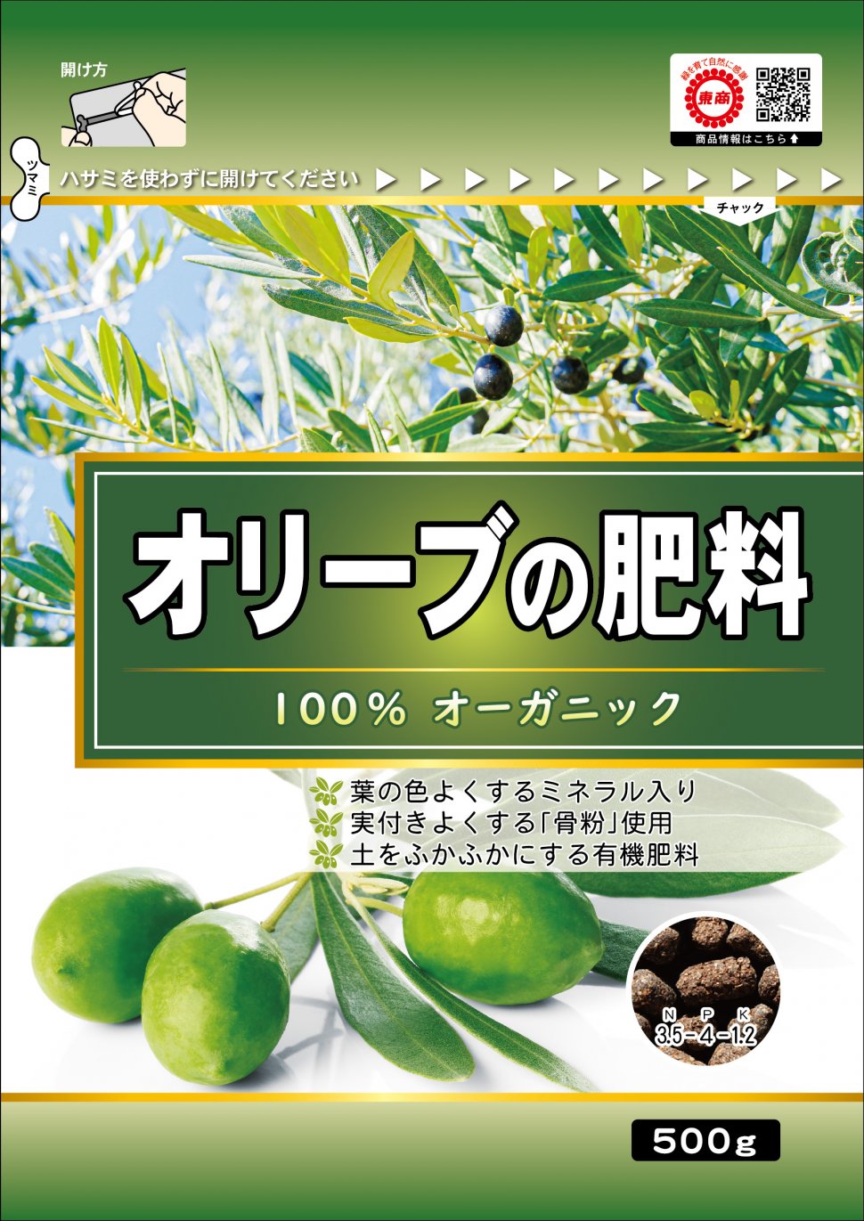 オーガニック100%!オリーブ専用肥料。葉色良く、丈夫に育ちます。