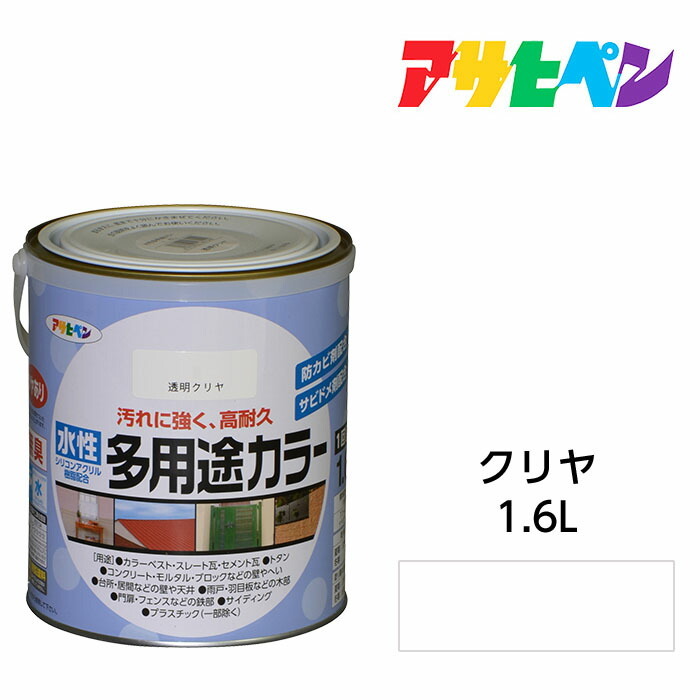 水性塗料 ペンキ アサヒペン 水性多用途カラー 透明・クリヤ(1.6L)サビ止め剤・防カビ剤配合 木 鉄 コンクリート モルタルにも