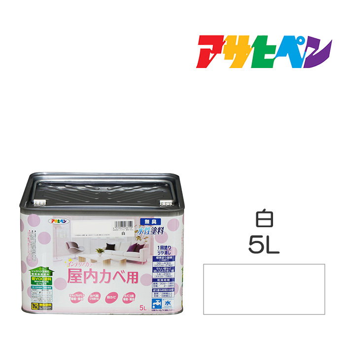 水性塗料 ペンキ アサヒペン NEW水性インテリアカラー屋内カベ用 白 (5L) カベ紙・ビニールカベ紙の上からでも。防カビ剤配合。リビング/子供部屋