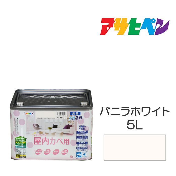 水性塗料 ペンキ アサヒペン NEW水性インテリアカラー屋内カベ用バニラホワイト(5L) カベ紙・ビニールカベ紙の上からでも 防カビ剤配合