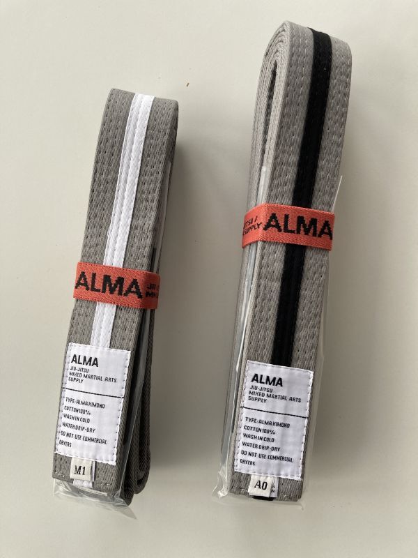 【マーシャルワールド】ALMA 灰帯白ライン M1(ALO-M1-GYWH)ブラジリアン柔術 柔道 柔術帯 柔術用帯 綿100% 高品質