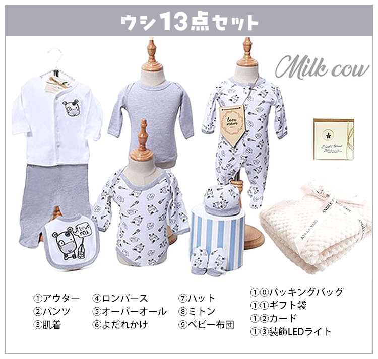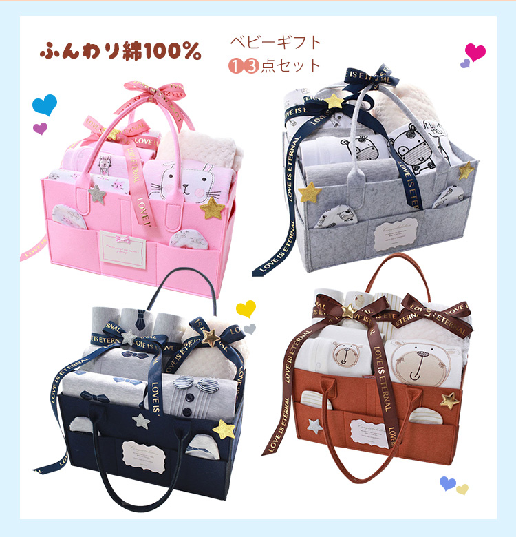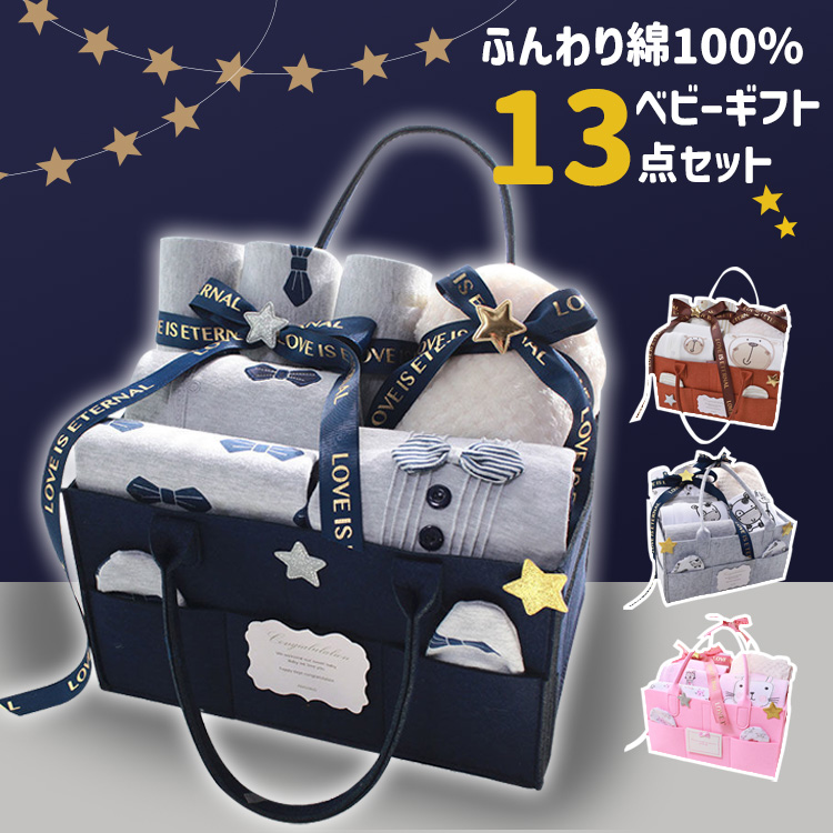 出産祝い ギフトセット 男の子 女の子 13点セット おしゃれ 友達 新生児 赤ちゃん 二人目 ベビーギフト 肌着 ミトン ハット 高品質 可愛い お歳暮 御祝い