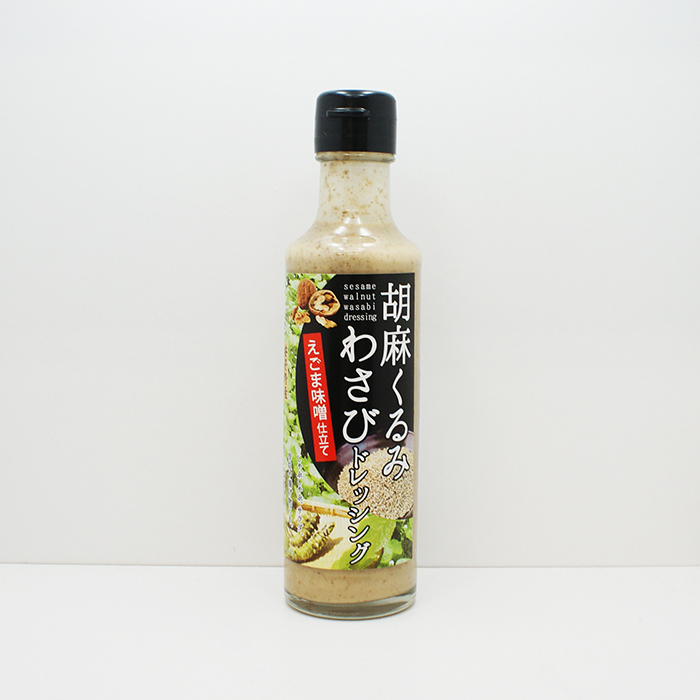 胡麻くるみわさびドレッシング 信州長野のお土産しゃぶしゃぶ、サラダ、冷奴や揚げ物にも食べ方いろいろ美味しさ広がる。本わさび使用えごま風味仕立て胡麻くるみわさびドレッシング。分離液状ドレッシングなのでよく振ってからお使いください。内容量200ml賞味期限製造日より約7ヶ月保存方法直射日光を避けて冷暗所で保存してください。原材料しょうゆ、砂糖、食用植物油、ごま、本みりん、卵黄、醸造酢、米みそ、くるみ、わさび、昆布エキス、食塩、えごま、唐辛子、増粘多糖類、香料、(原材料の一部に大豆、小麦、卵を含む)(信州長野のお土産 土産 おみやげ 長野県 長野土産 長野お土産 お取り寄せ ご当地 グルメ)