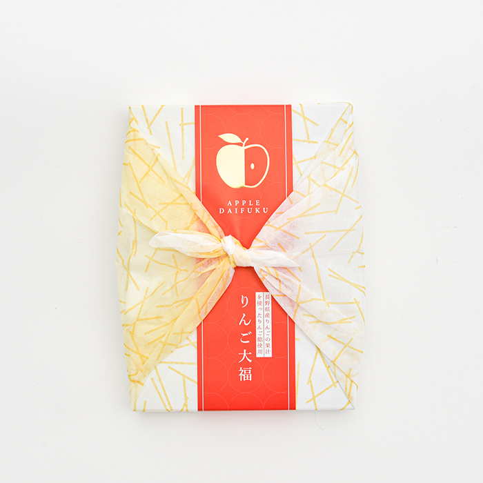 長野県産のりんご果汁を使ったりんご餡を使用した大福。爽やかな甘さが引き立つ上品なお菓子に仕上げました。柔らかいお餅とりんごの風味が絶妙です。