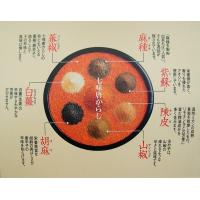七味唐からし:唐辛子(中国、日本)、陳皮、胡麻、麻種、紫蘇、山椒、生姜、(一部にごまを含む)
