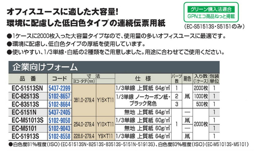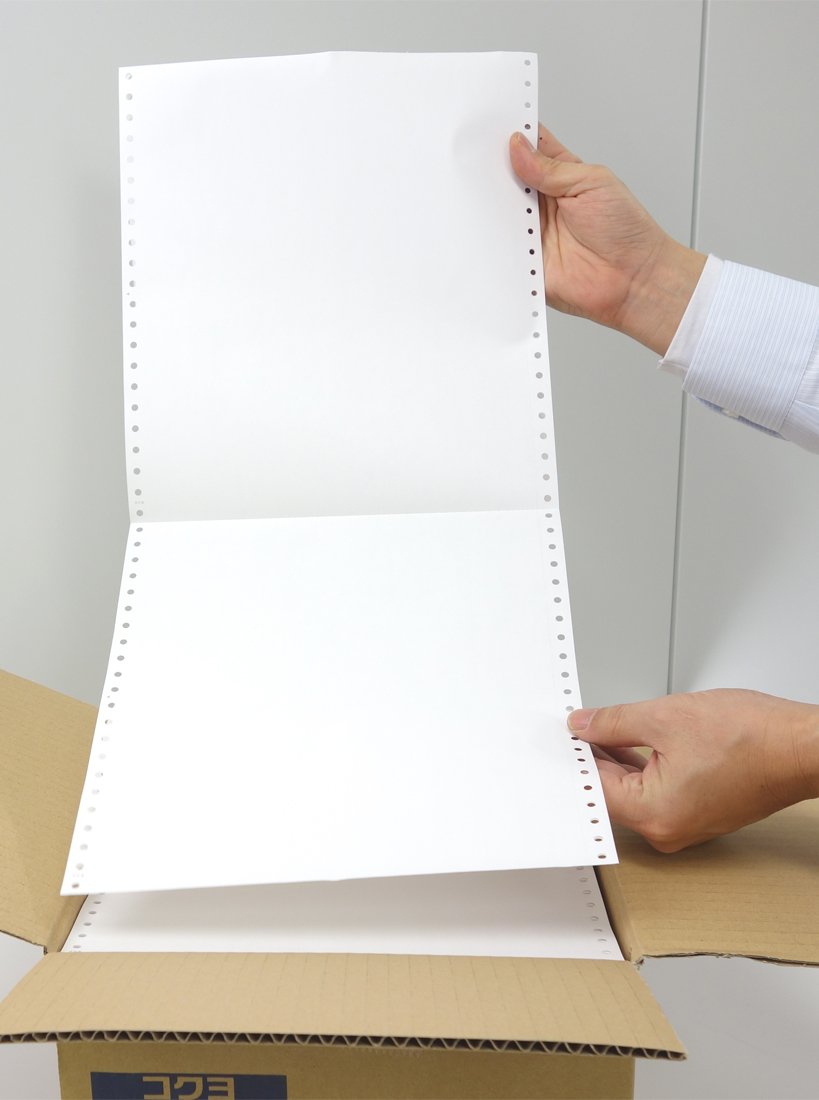オフィスの大量印刷に最適な、コクヨの連続伝票用紙 EC-M5101。クリアな印字を可能にする高品質な白紙タイプで、ビジネス文書からデータ出力まで幅広い用途に対応します。環境に配慮した上質紙(64g/m2)を使用し、グリーン購入法にも適合。Y10×T11(254.0×279.4mm)の標準サイズで、ほとんどの連続プリンターでスムーズな給紙を実現します。2000枚の大容量パックで、コストパフォーマンスにも優れ、業務効率の向上に貢献する、頼れる一枚です。