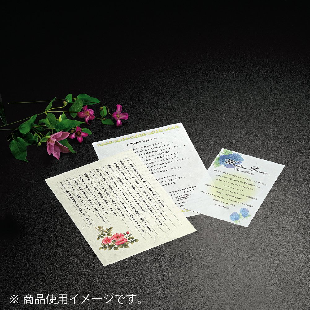 ※和紙の製法上、柄の配置や紙の厚みにバラつきが見られる場合があります。また、用紙表面にまれにチリが含まれることがあります。インクジェット用のコーティング処理は施されておりませんので、ご使用のプリンタ機種によってはインクがにじむ場合があります。毛筆やペン書きも可能ですが、筆記具の種類によってはにじむ恐れがあるため、事前にご確認の上ご使用ください。片面印刷専用です。