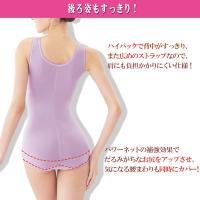 ソフトカップが付いて、インナーのようにも着られます。ノンワイヤーで身体を締め付けずとてもラクな着心地です。着用中はほどよい締め付けでボディシェイプ♪
