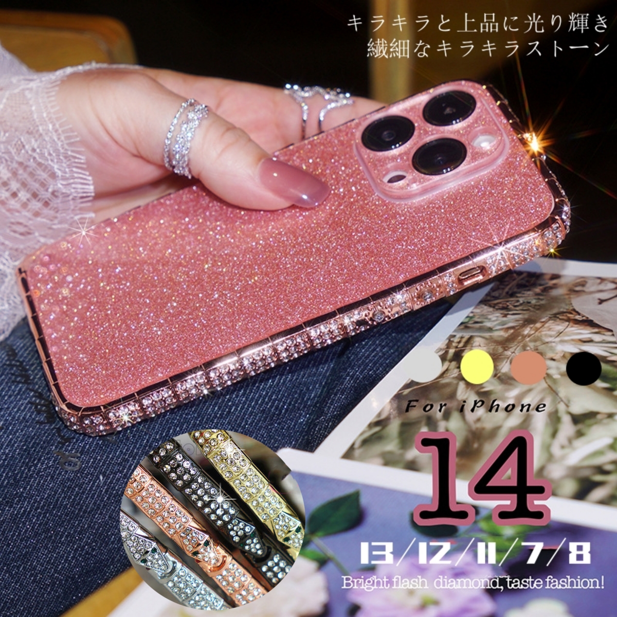iPhone14 pro Max 14plus iPhone13pro Max iphone12 pro iphone11 7/8 SE X/XSスワロフスキー風 キラキラ デコ バンパー ストーン 携帯カバー