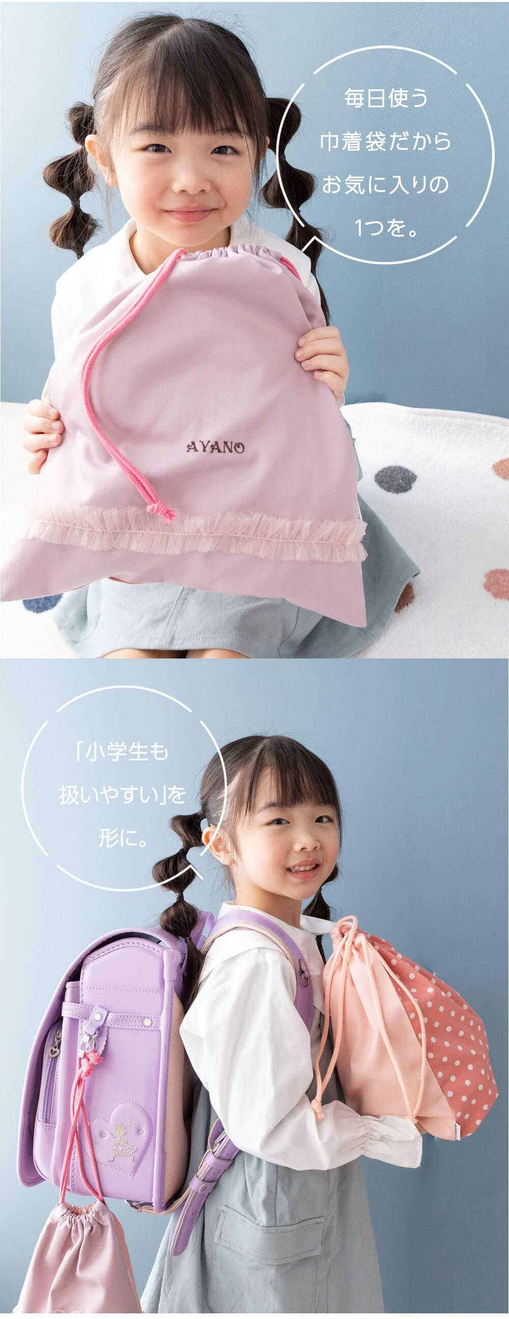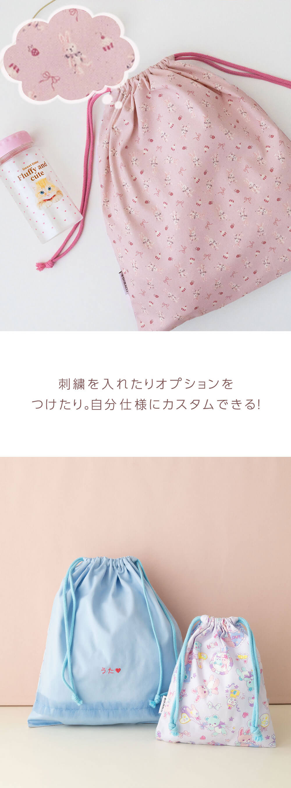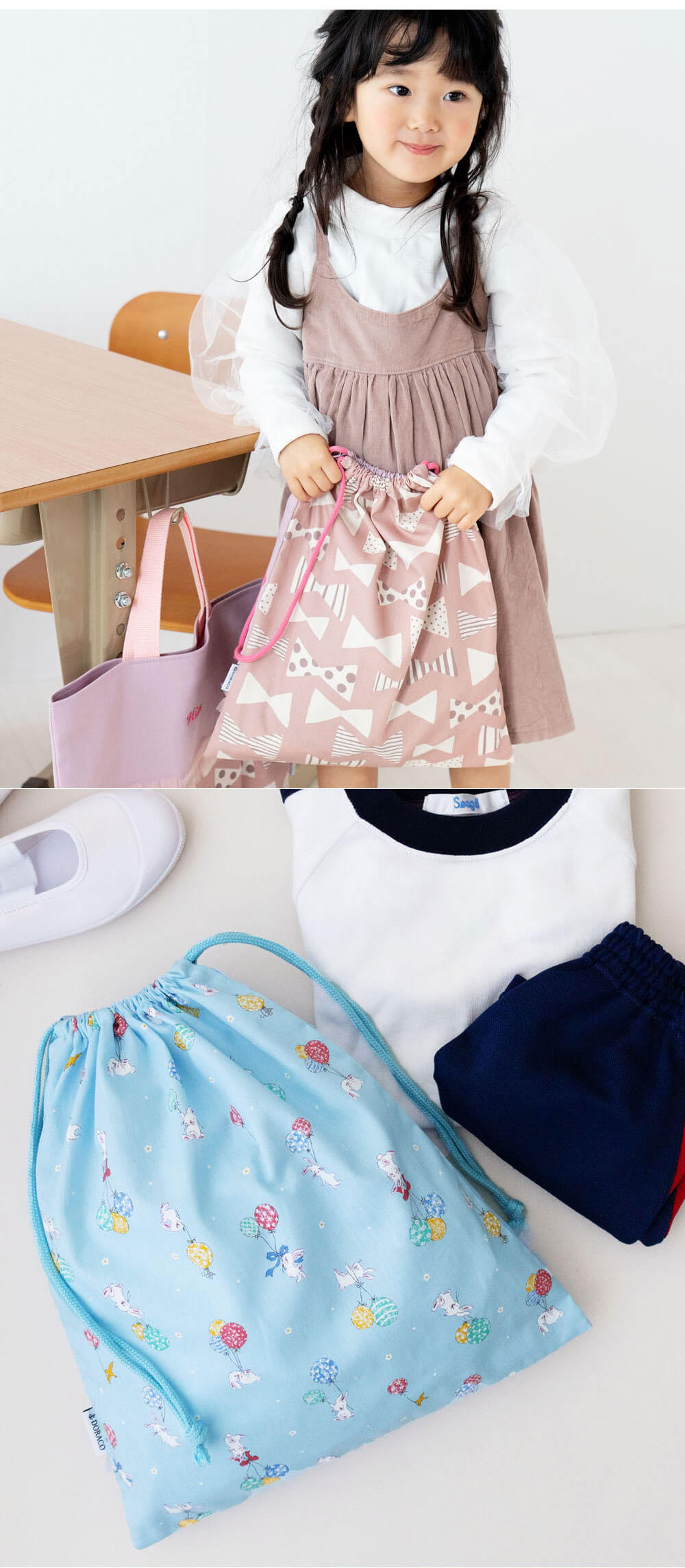 巾着袋 大サイズ 体操服袋 給食袋 \名入れ刺繍可能/Lサイズ 女の子 入園 入学 通園 通学 小学校 幼稚園 日本製 ドラコ DORACO 日本製