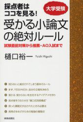 | 商品名 | 受かる小論文の絶対ルール 採点者はココを見る! 大学受験 試験直前対策から推薦・AO入試まで 樋口裕一/著 |